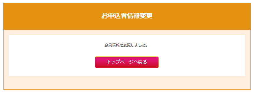現在のパスワードと変更後のメールアドレスを入力し、会員情報の変更ボタンをクリックします。